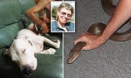 Darwin River couple find 3.5m python in bedroom after it wrapped around their dog A woman who woke to her dog's blood-curdling yelps to find the Bull Arab cross crawling from under her bed with a 3.5m olive python wrapped around ...